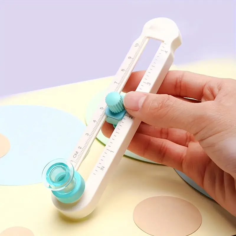 1pc Compact Manual Circle Cutter Tool – DIY Plastic Round Cutter with Rotating Handle, White & Blue Design for Precise Circular Cutting, Perfect for Crafting and Office Use, Office Supplies | Clear Measurement Markings | Plastic Construction