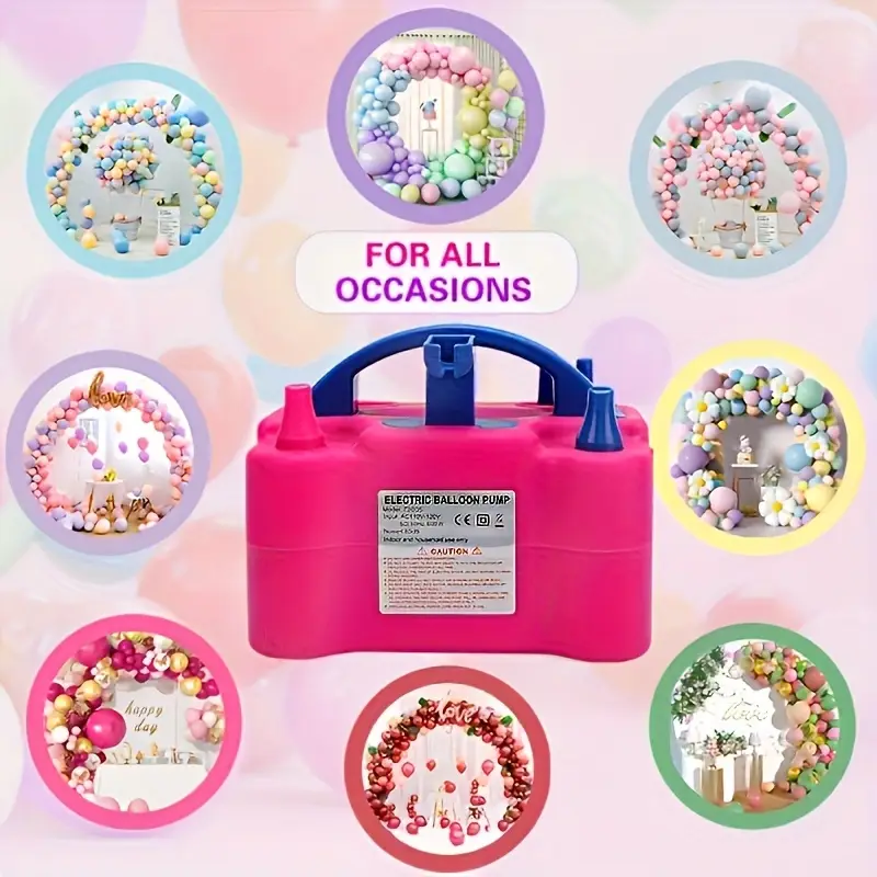 1 x Electric Balloon Pump, 220-240V, Dual Hole Single Control Deflation Pump, PP Material, White/Cyan/Rose Red, with Type C Plug, for Balloon Decoration, Not for Long Tube Balloons, Without Battery